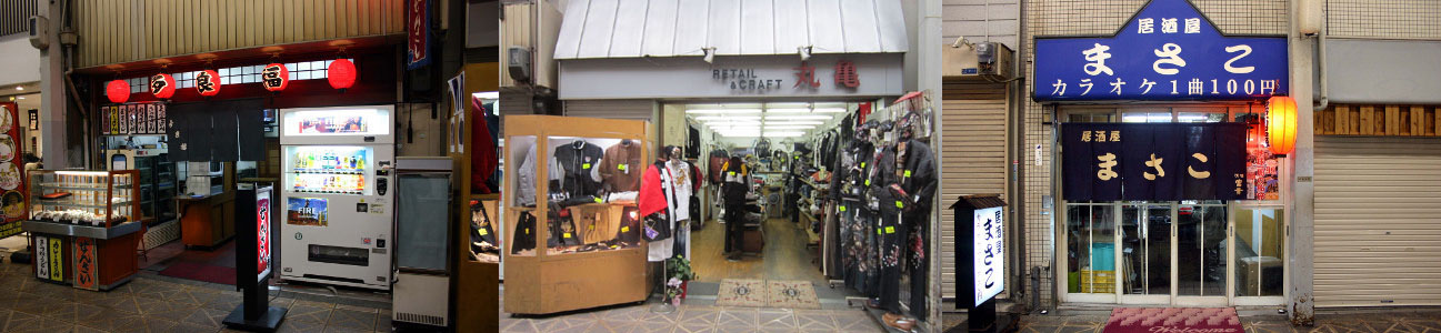 商店街の沿革 飛田本通商店街振興組合 ( 愛称 「動物園前一番街」 ) 昭和49年7月に設立された飛田本通商店街振興組合は、大正時代に築かれた日本最大級の花街といわれた飛田新地を中心に自然発生的に形成された8商店街組織の一つで、大阪市営地下鉄の御堂筋線・堺筋線の動物園前駅すぐのところ、JR大阪環状線・南海本線・南海高野線新今宮駅から徒歩3〜5分くらいに位置するたいへん交通の利便性の高いところにあるため、飛田地区商店街の中心的役割を担ってきた。赤線廃止以降、高度成長期には、大阪万博を中心とした旺盛な建設需要により多くの建設労働者が、近隣のあいりん地区などに流入し、昭和50年代初め頃まで、その人々の消費に支えられ商店街は、たいへん賑わっていた。 しかし、ご多分に漏れず、バブル崩壊によって、デフレ経済が進行する中、労働者の就労機会の減少とそれら人々の高齢化及び生活保護受給者の急増により消費需要が低迷し、商店街の空き店舗が急増した。また、同地域は建設労働者が待遇改善を求めて、暴動が多発するなど、交通の利便性が高いにもかかわらず、一般市民が近づきがたい、たいへん暗いイメージが強かった商店街を一般の主婦やフャミリー層が安心して通行できるまちづくりを行うため、関西国際空港開港(平成10年9月開港)の話が持ち上がると、平成6年に商店街イメージアップ委員会を設置して、イメージの刷新を図るため、商店街で事業を営む長老組合員を説得し、一般消費者によろこばれる夏と冬の大売り出しやガラガラ抽選会を実施するとともに、天王寺動物園に隣接していることもあって、平成10年から愛称を「動物園前一番街」と称し、地域住民に親しまれるまちづくりを目指した。 更に、平成15年3月、国と大阪府の補助事業である商業基盤施設整備事業によって、昭和50年に設置したルーバー式の旧アーケードが老朽化していたことと暗いという来街者の声が多かったことから、自然光を取り込んで明るくするため切妻型(三角屋根)でポリカーボネートのアーケードに総事業費約64,000千円でリニューアルし、明るく洗練された親しみのある商店街に変貌させるとともに、商店街の更なるイメージアップと国道43号線を挟んで商店街の北側にある大阪のシンボルの一つでもある通天閣を有する新世界地区の観光客が流入するように、アーケード北入口に全国的にも珍しくユニークな象やキリンなどの動物モニュメントを設置した。 また、同商店街のある西成区が大阪市内で最も高齢化率が高く、救急搬送も多かったことから、平成19年度にはAED(自動体外式除細動器)を設置するとともに、平成20年度には防犯カメラを設置し、それまで多かったひったくりや強盗などの犯罪抑止に努めるなど、まちの安心・安全に積極的に取り組んでおり、地域住民だけでなく、地元の警察署や消防署から高く評価されている。 一方、平成22年3月、国の中小商業活力向上事業を活用して旧アーケードと同時期に設置したカラー舗装が経年劣化していたため、高齢者も安心して通行できるバリアフリー型のカラー舗装にリニューアルを図った。 そのような努力の結果、観光客は勿論のこと、関西空港開港以降、商店街周辺にたくさんあった日雇い労務者用の簡易宿舎を観光客用のホテルに改装するところが増加し、それらのホテルに滞在するいわゆるバックパッカーと呼ばれる外国人観光客など、従来にない顧客が流入するようになり、毎年、実施していた売出し事業では、それらの顧客に対応できないため、平成24年度より空き店舗を活用して地域住民や来街者、組合員に科学というものを身近に知ってもらうためのセミナー「サイエンスカフェ」(カフェのような気楽な雰囲気の中で科学を語り合ってもらうまちゼミのようなもの)を大阪大学と連携して開催するとともに、平成25年からは来街する外国人観光客に対して、近隣のホテルの協力を得て、お茶や華道など日本の文化を体験してもらう事業を創設し、中国語や英語で対応する店舗も現れ始めるなど、組合員店舗の事業経営の向上と快適な地域コミュニティの構築に貢献している。 |